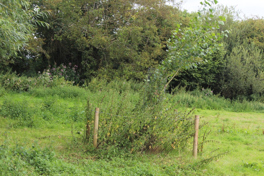 First are the Black Poplars, which I planted along a local brook, mainly because most textbooks would suggest wetland areas to be their primary habitat. These trees have done pretty well overall, albeit one is much larger than the rest; but none have died out of the original 4 planted, which is quite positive. The large one I would guess now stands about 3.5 metres (11.5 feet) tall and the rest about half of that. The tree guards seem to have worked well, and curiously, the fast-growing poplar mentioned above, happens to also be the one in the cattle pasture; and there a signs of browsing where the shoots have grown beyond the metal netting. Speaking of the metal netting, it seems that large branches that grow out of the steel mesh, receive friction from wires, wearing off the bark, which could prove problematic as they grow further but for now it doesn’t seem to be significantly hampering their growth at present.
